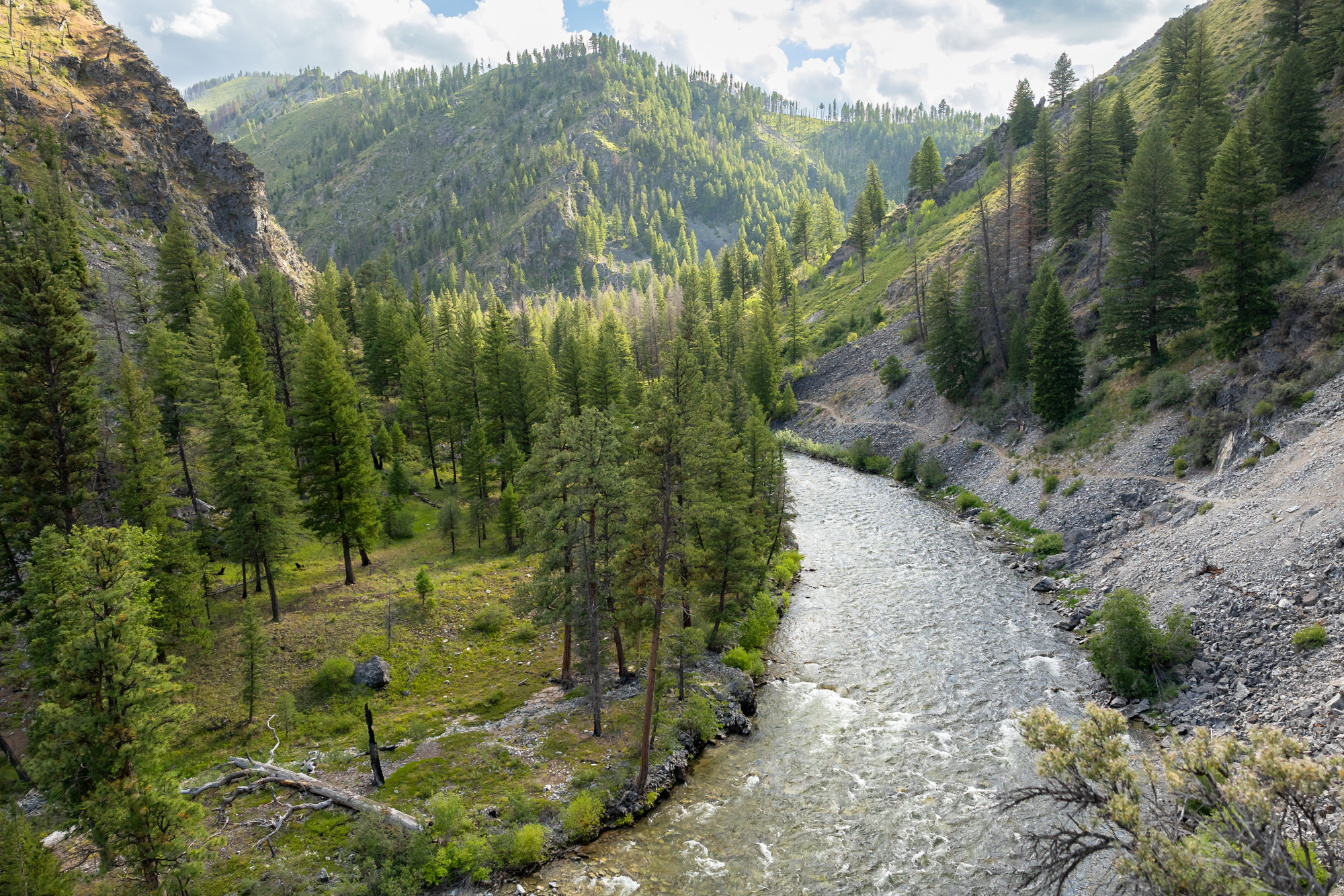 The Middle Fork trail never strays far from the river in it’s beginning section, but even walking just a couple hundred feet away from the rushing of the water can transport you to another realm in the wilderness. Glimpses of the river from above are transfixing, and offer a new perspective of the Salmon River.